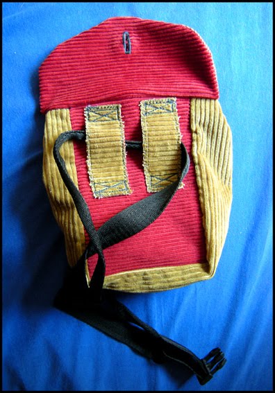 kar pa je skoraj še najjače pri tem torbiču je to, da je žametni del blaga recikliran (včeraj oldskul pretesne dolge hlače, danes praktiš lepa torbica).